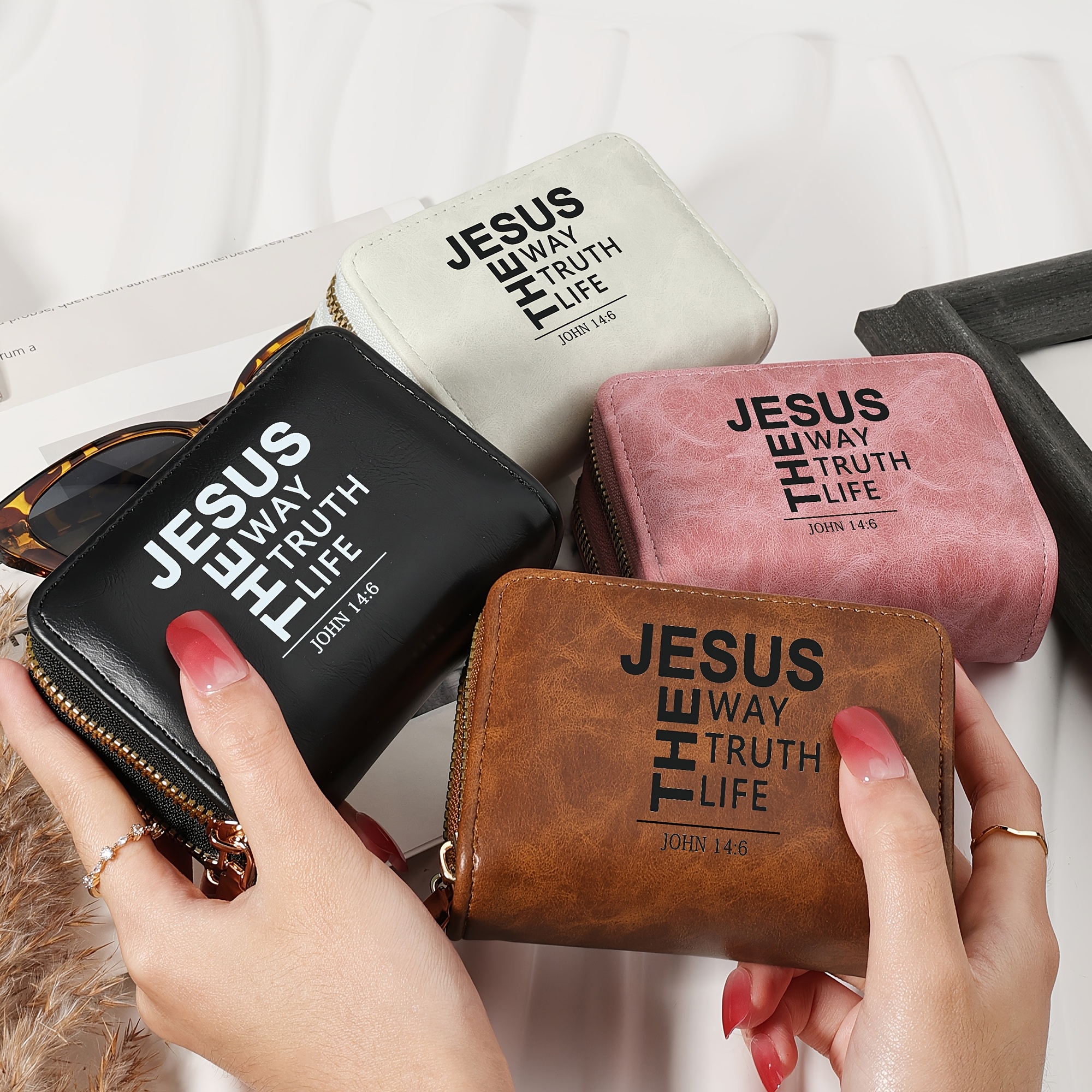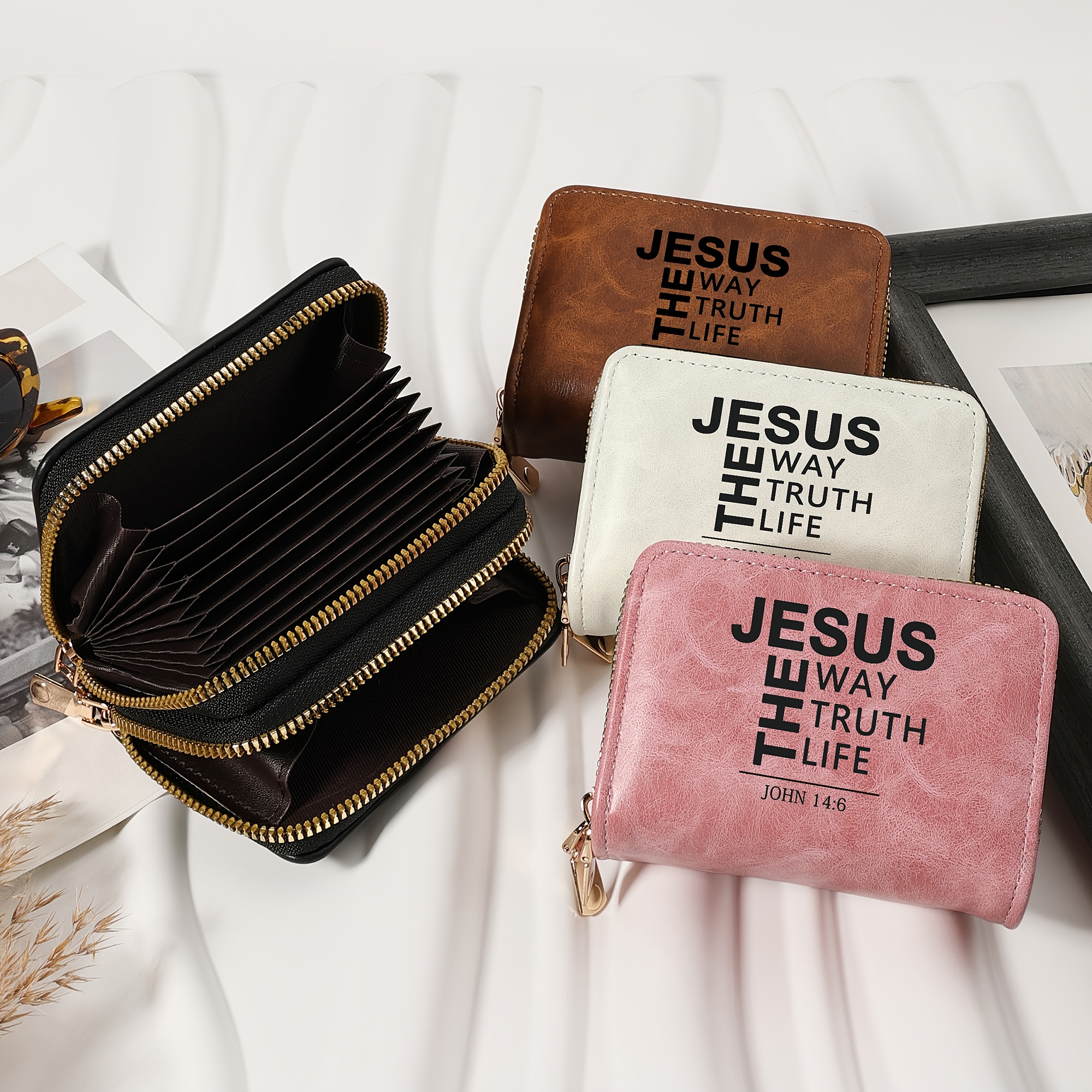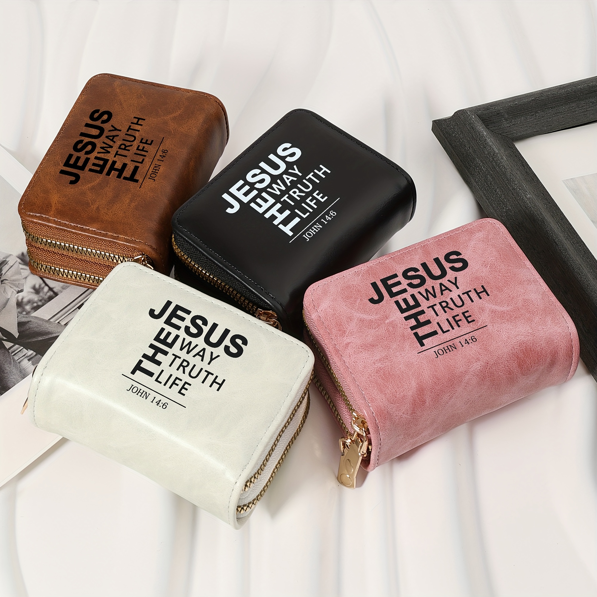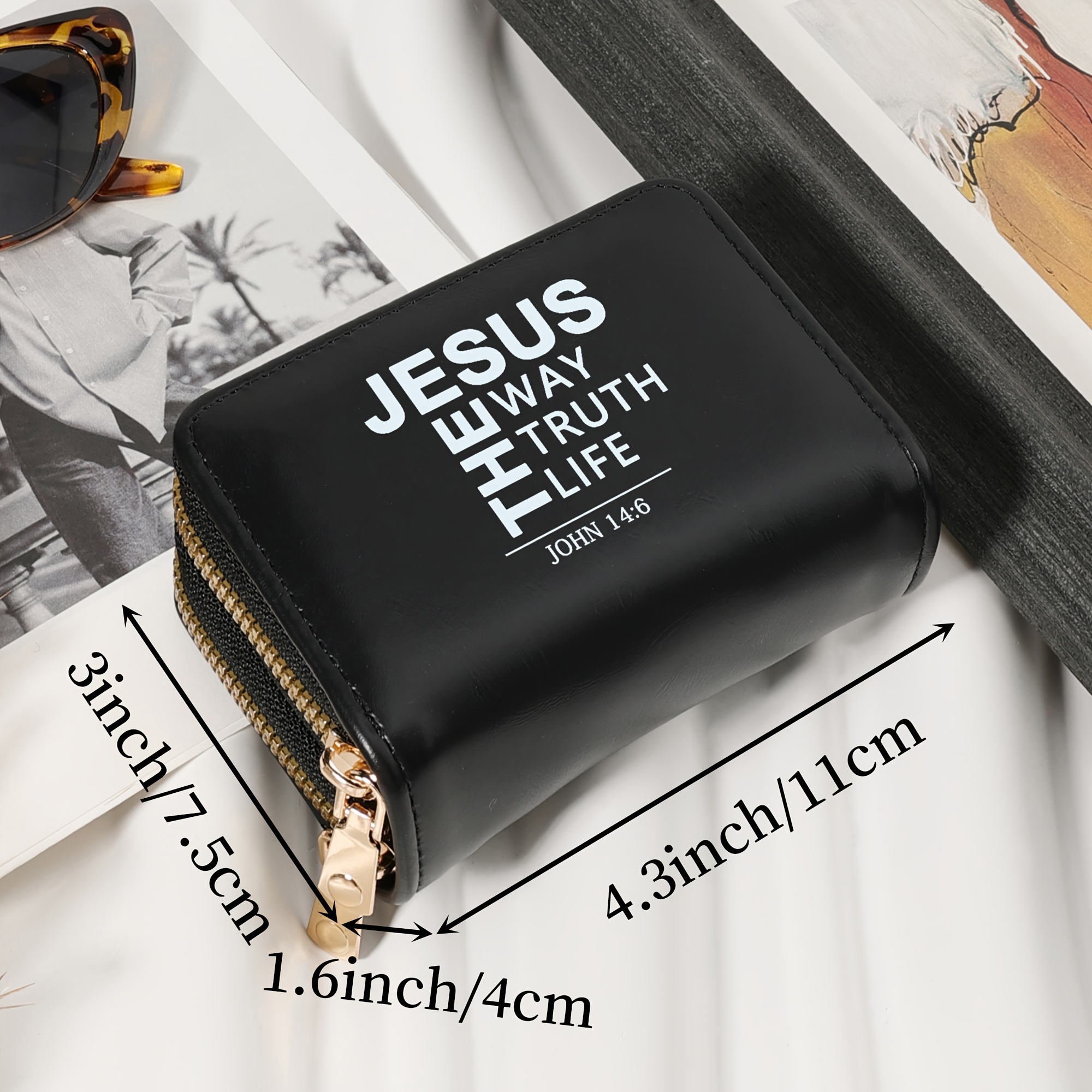 Minimalist Letter Printed Double Zipper Credit Card Clip Bag, Trendy Card Short