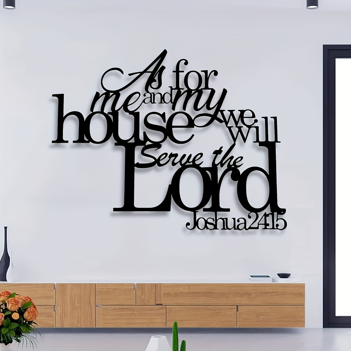 One Piece of Metal Wall Art Featuring a Bible Verse, Stating 'As for Me And My H