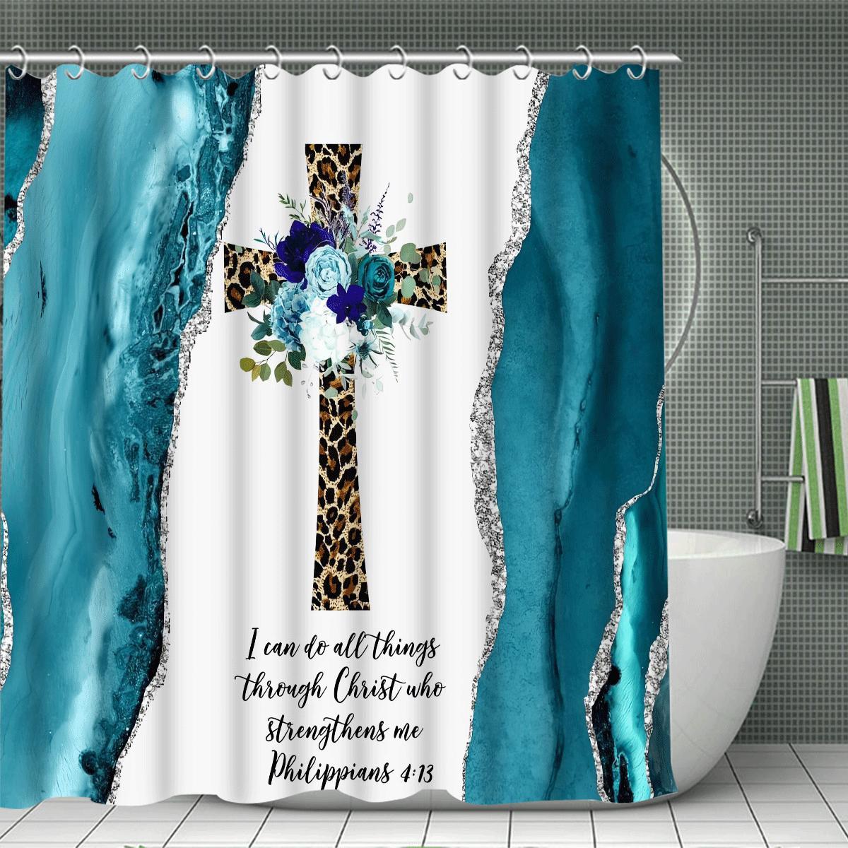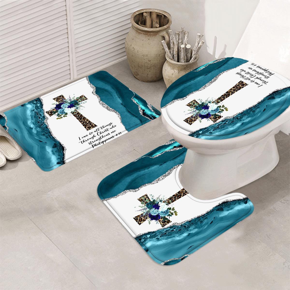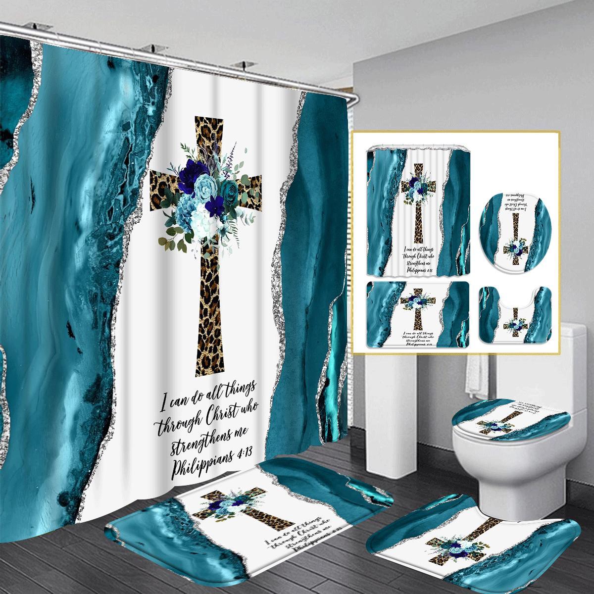 Prayer of the Cross 1/ 4pcs shower curtain set, modern style bathroom decoration