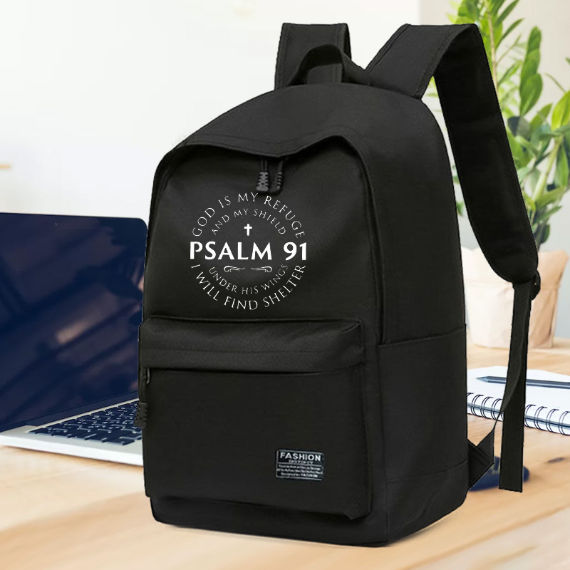 Psalm 91 Bible Verse Backpack - Christian Religious Backpack with Adjustable Sho