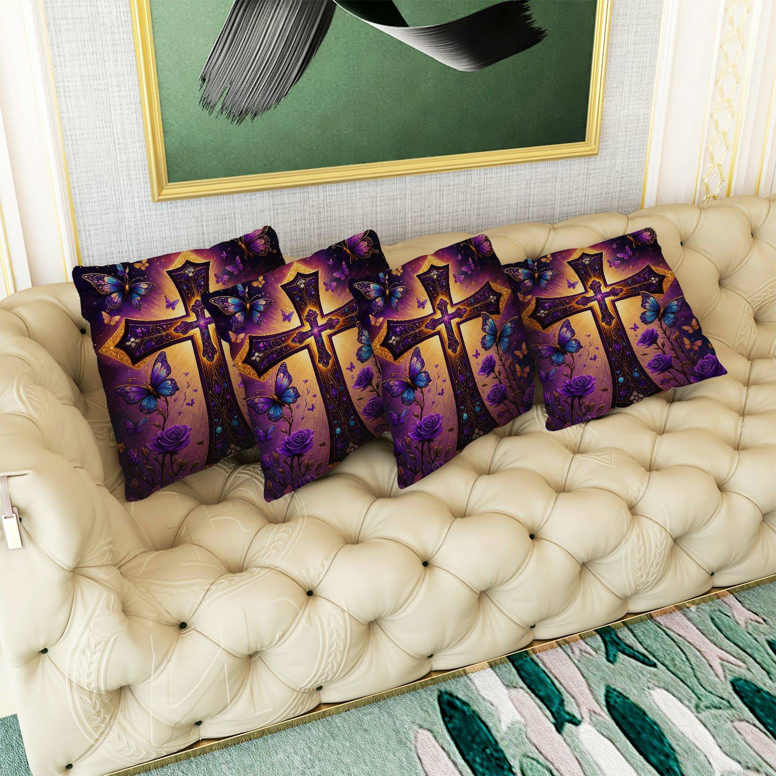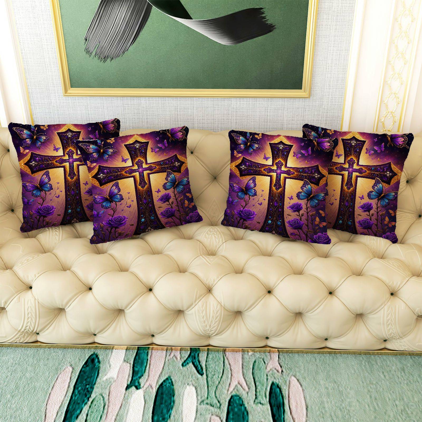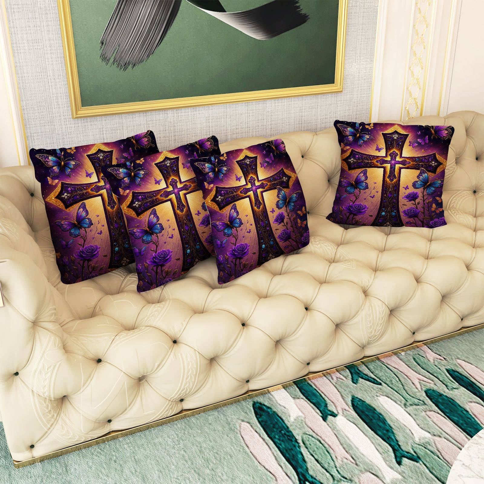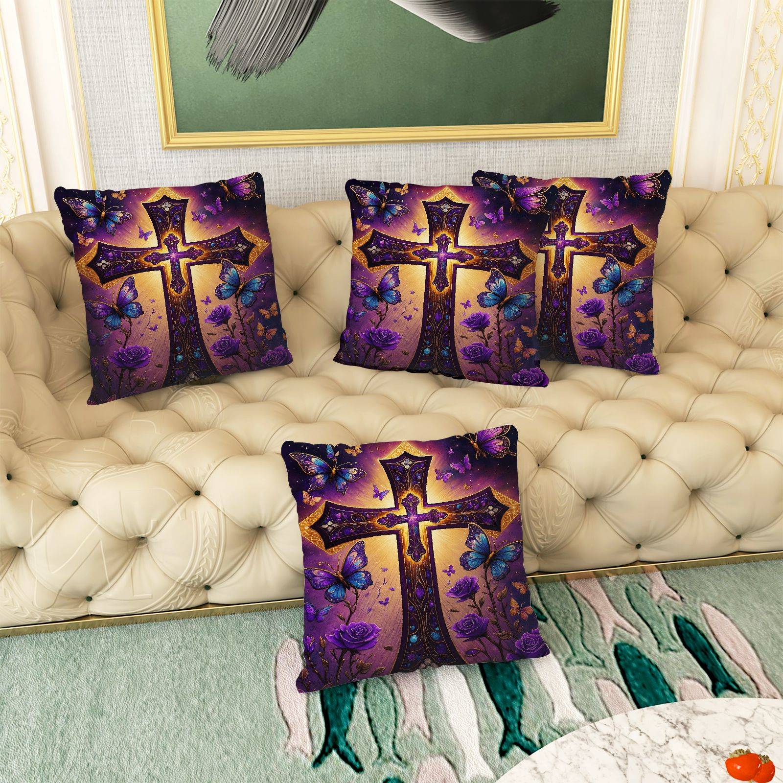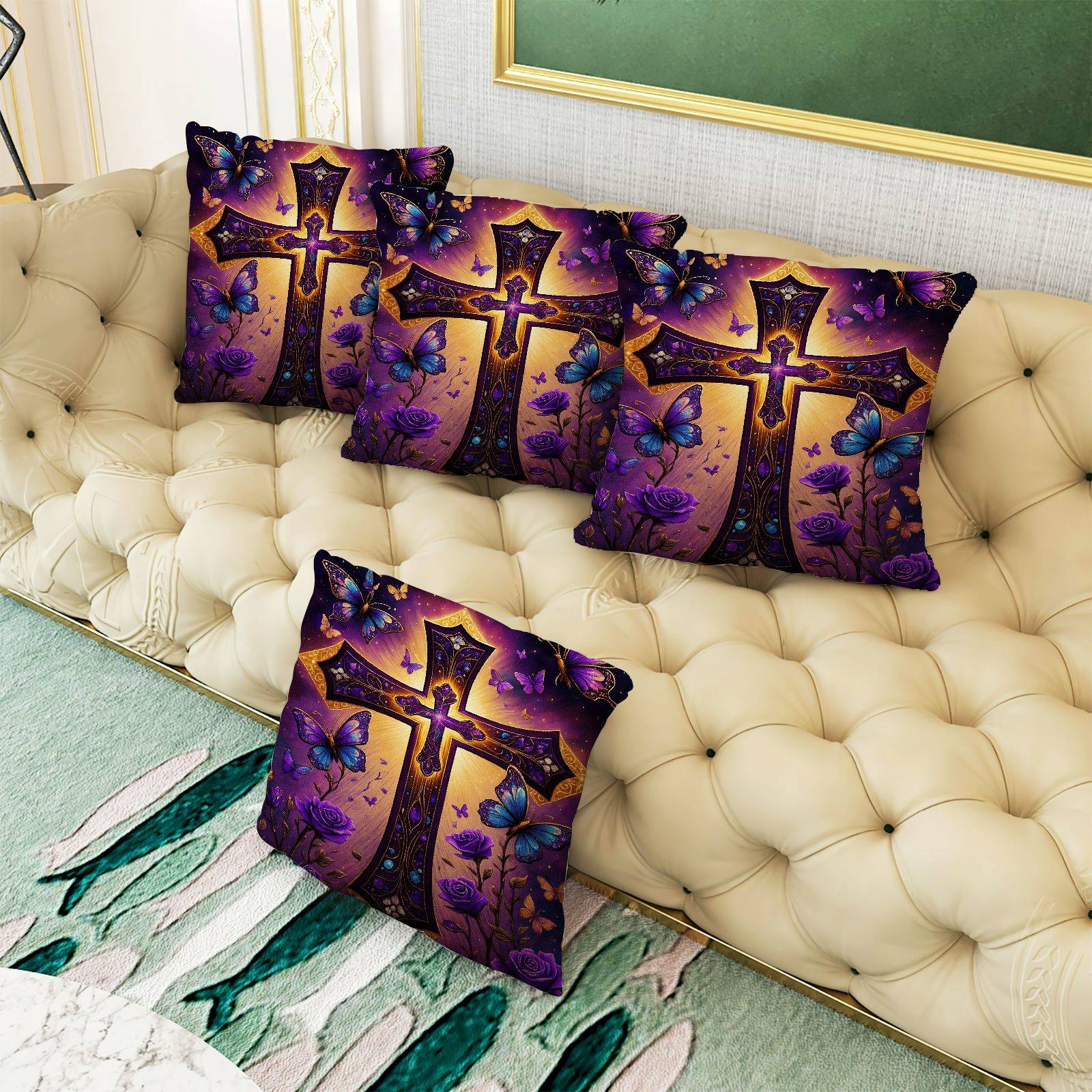 Set of 4 Christian-Themed Pillow Covers Featuring Easter Designs, Including Cros