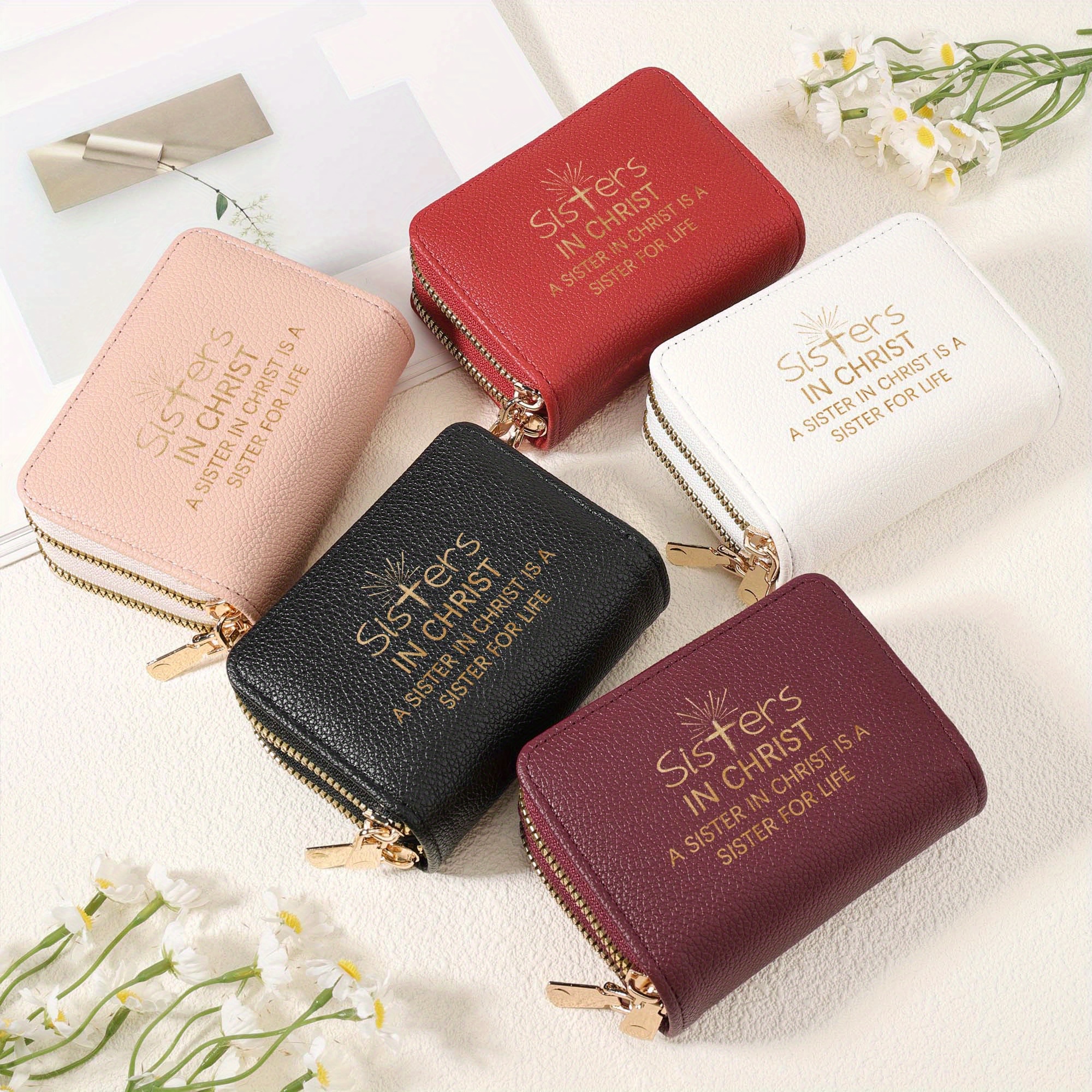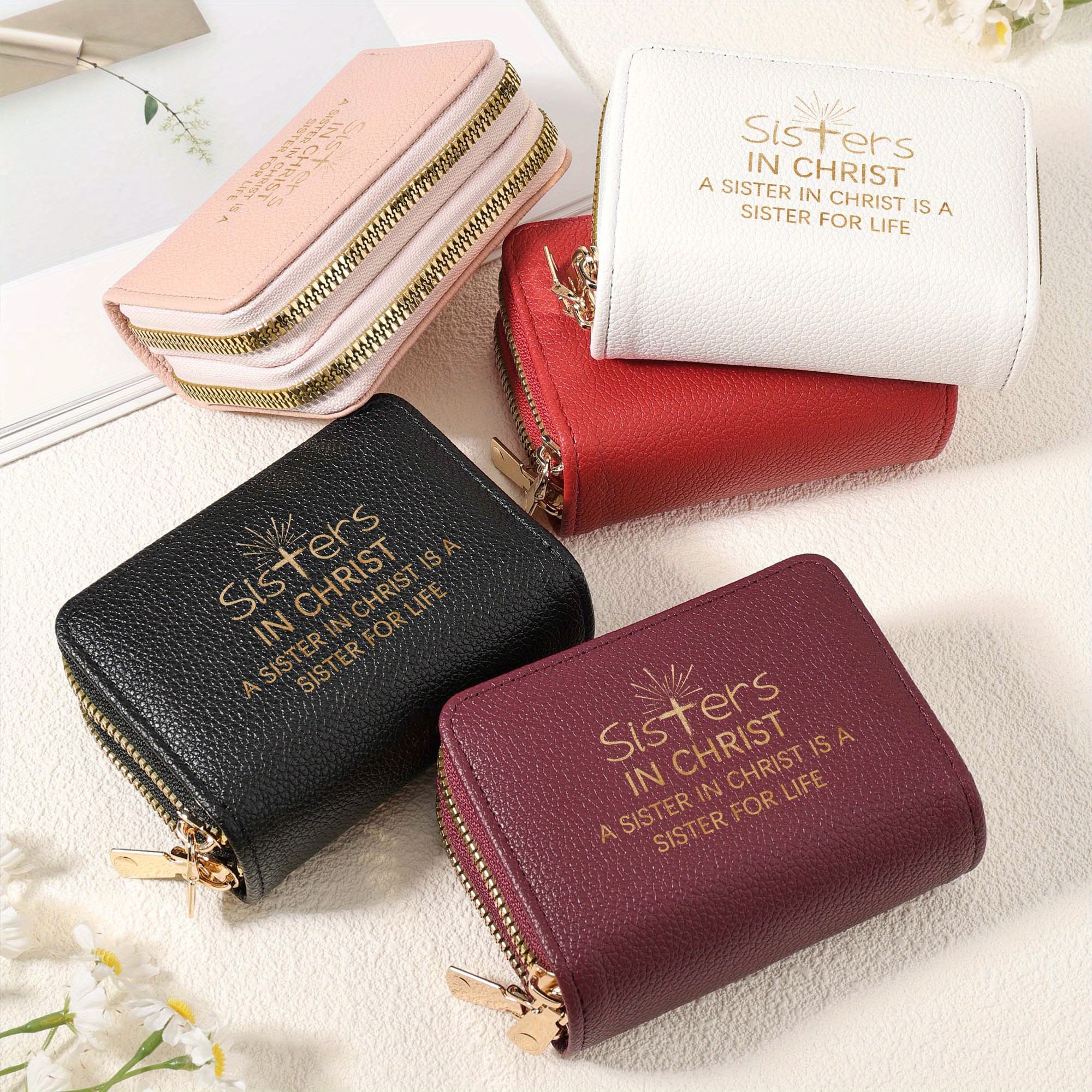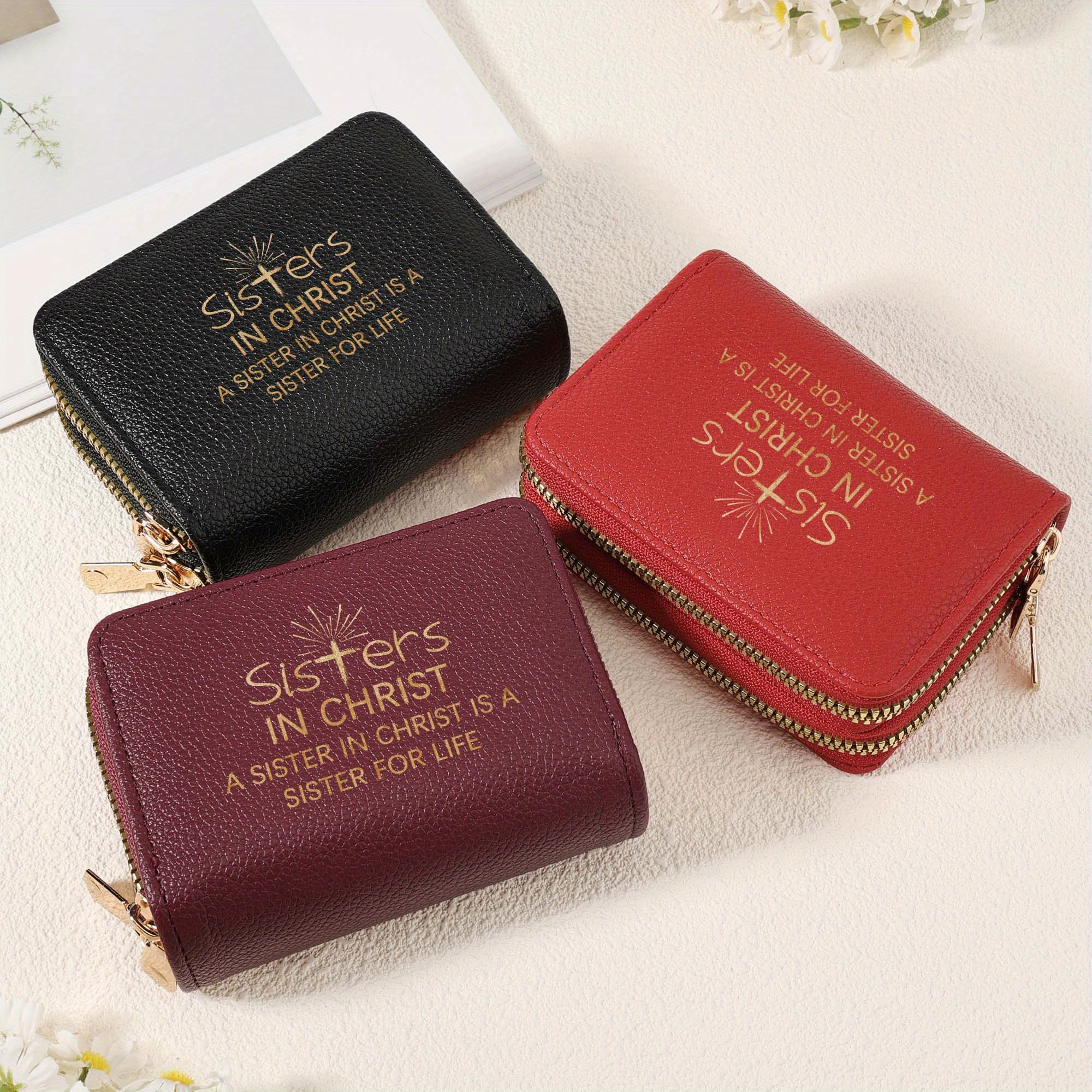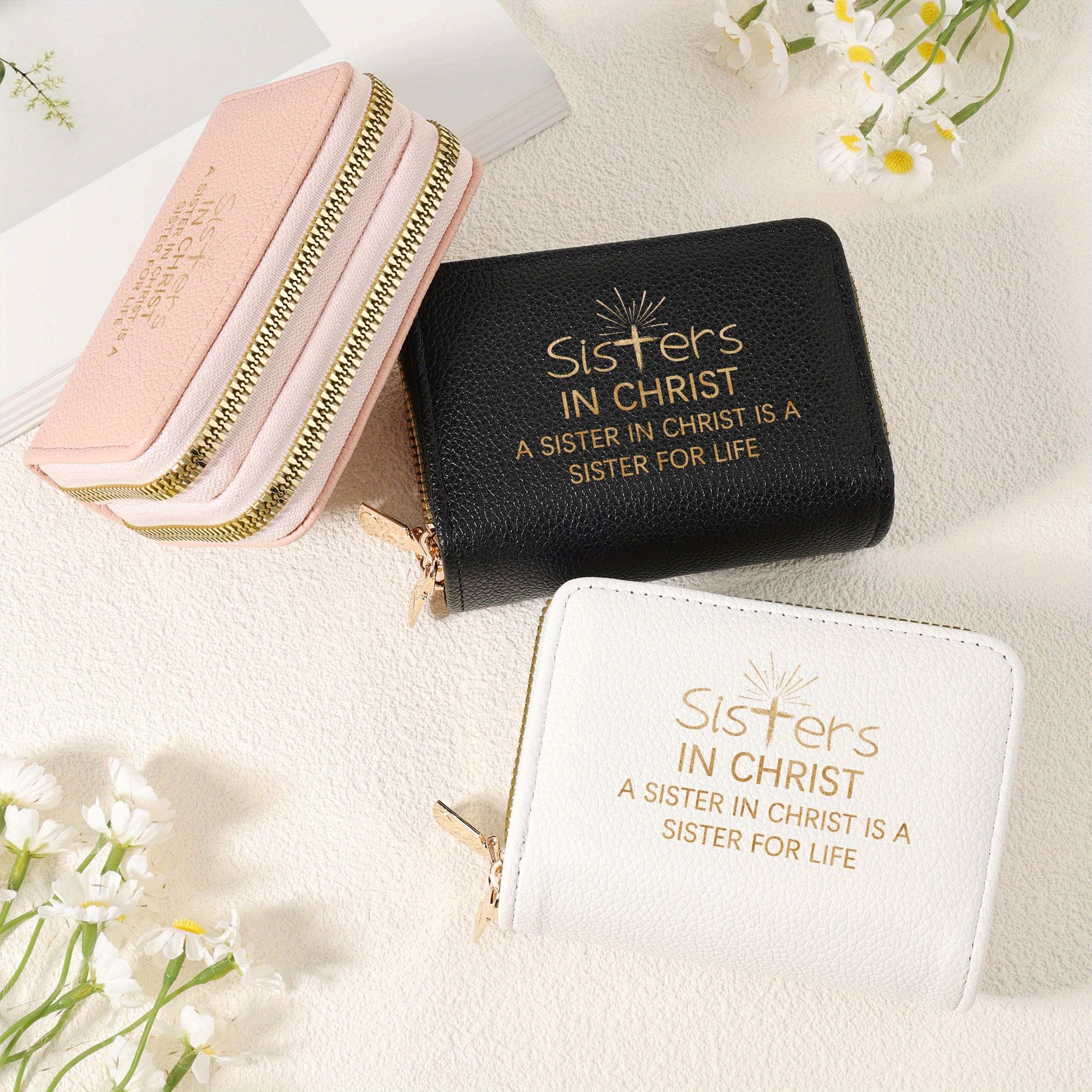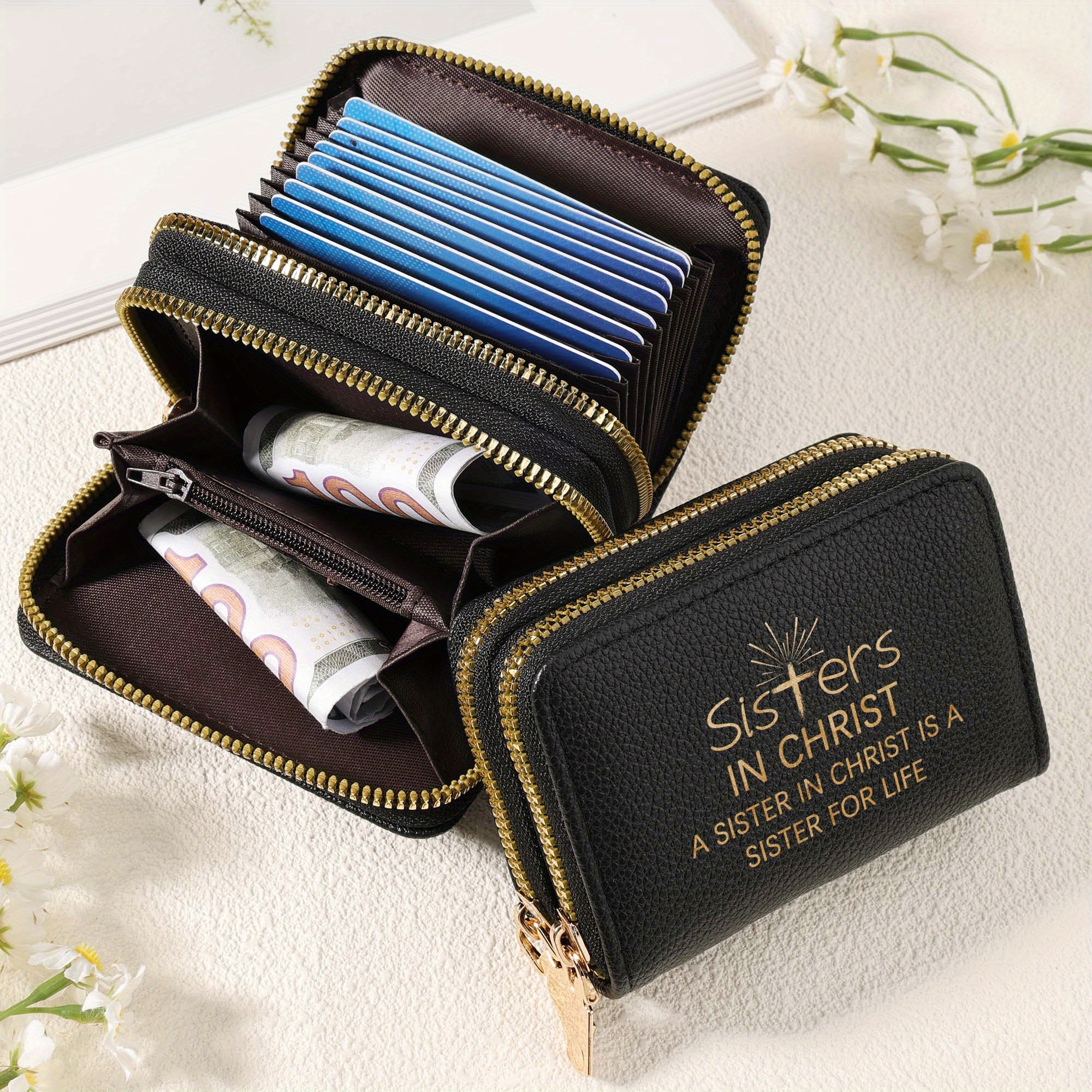 Stylish "Sisters in Christ" Double Zipper Wallet for Women - Multi-Card Slots, C
